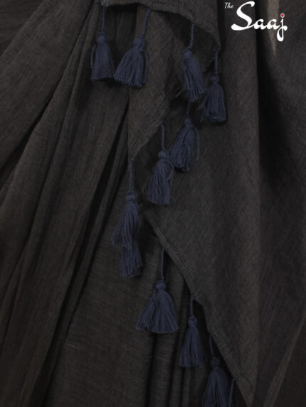 Phoenix – Dark Grey Plain Mul Cotton Saree