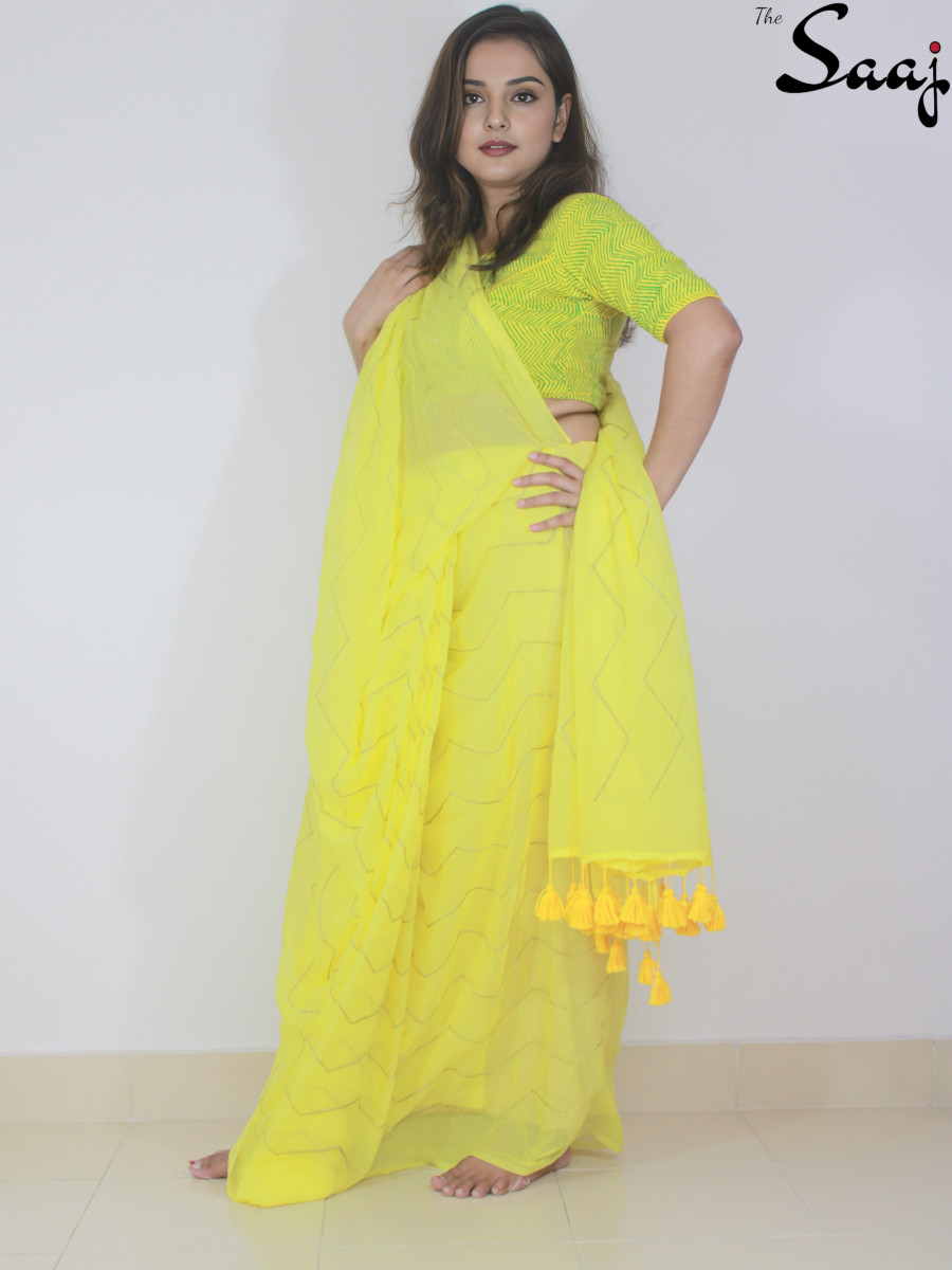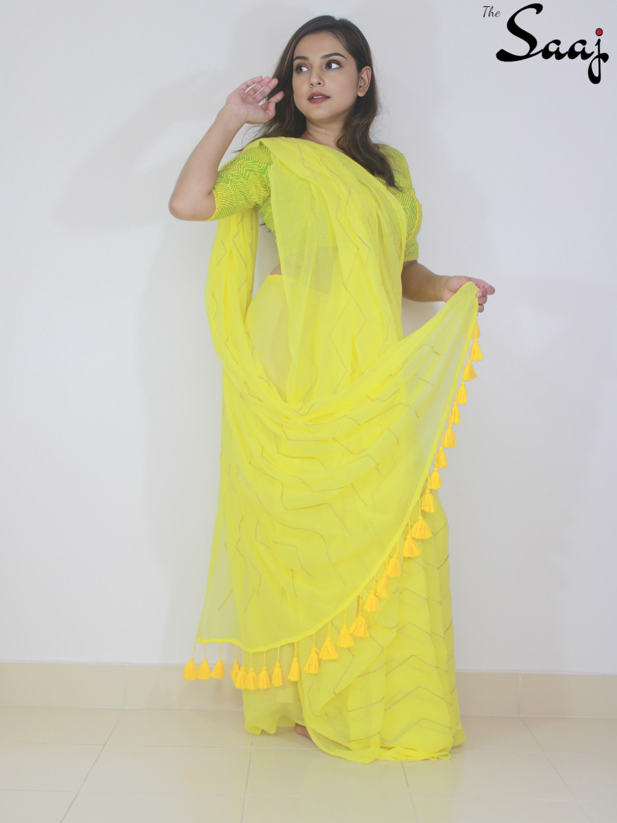 Lemon makes tasty and refreshing lemonade to quench your thirst in scorching summer. The same does our “Lemon Lush” to give you peace and comfort in summer days. Featherlight mul cotton is woven with exquisite zari thread to make your look refined and classic. Be it a Sunday brunch or an after office party, you will bloom as a fresh sunflower in this saree. This saree comes with beautiful yellow tassels at the pallu end and elevates your wardrobe with its luxurious presence.