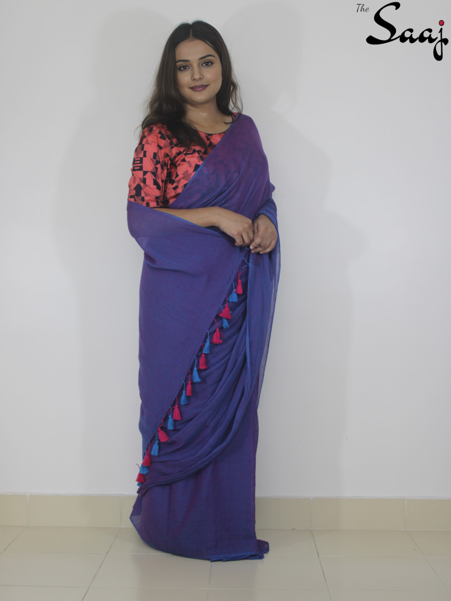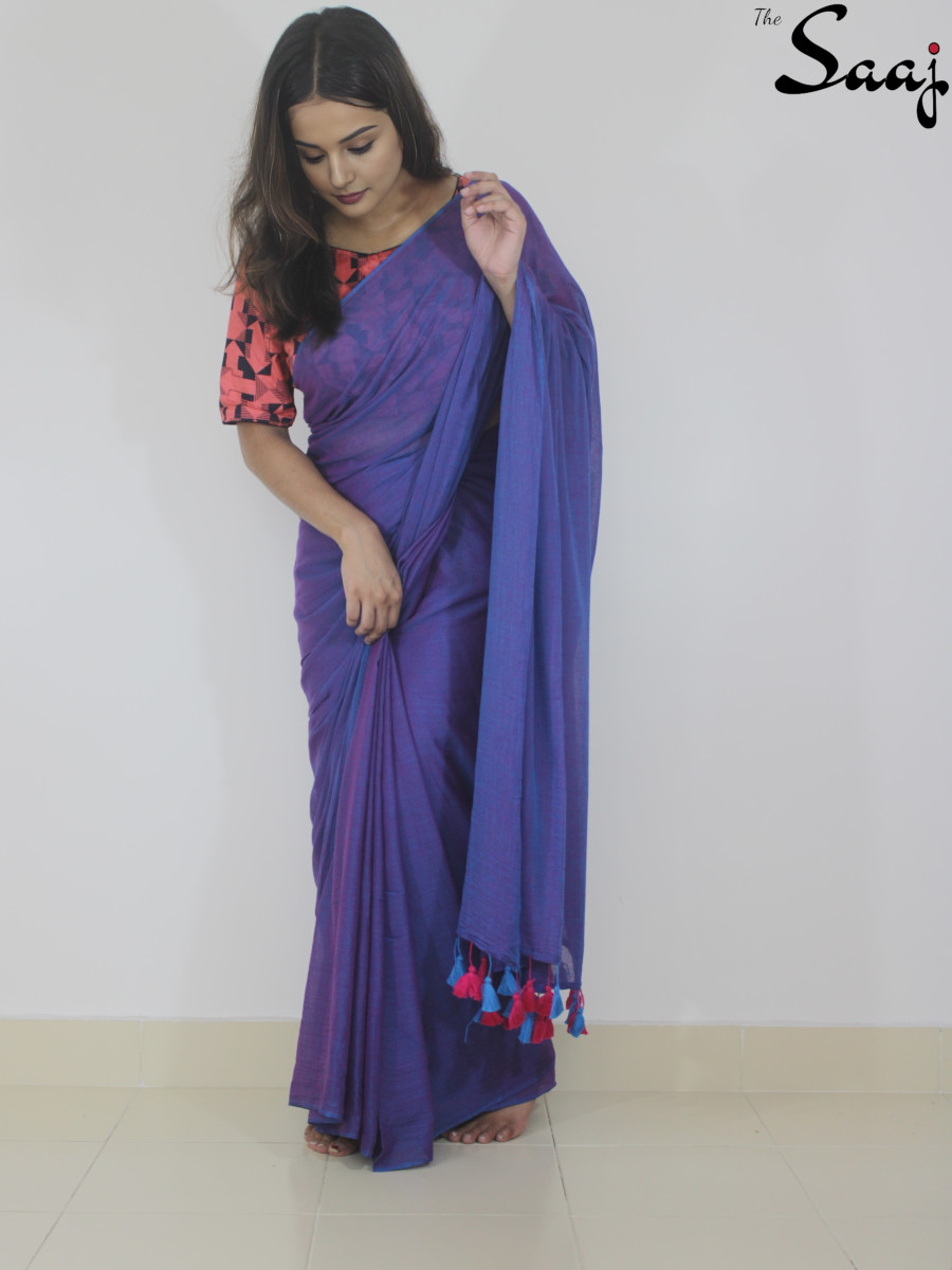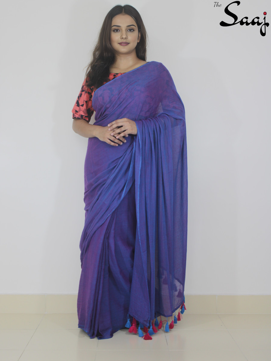Home Sarees Featherlight Mul Cotton Neelam – Purple and Blue Dualtone Soft Mul Cotton Saree