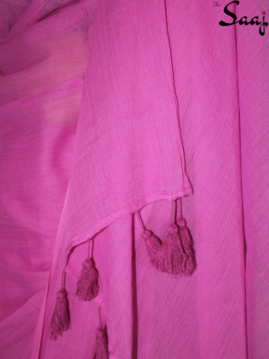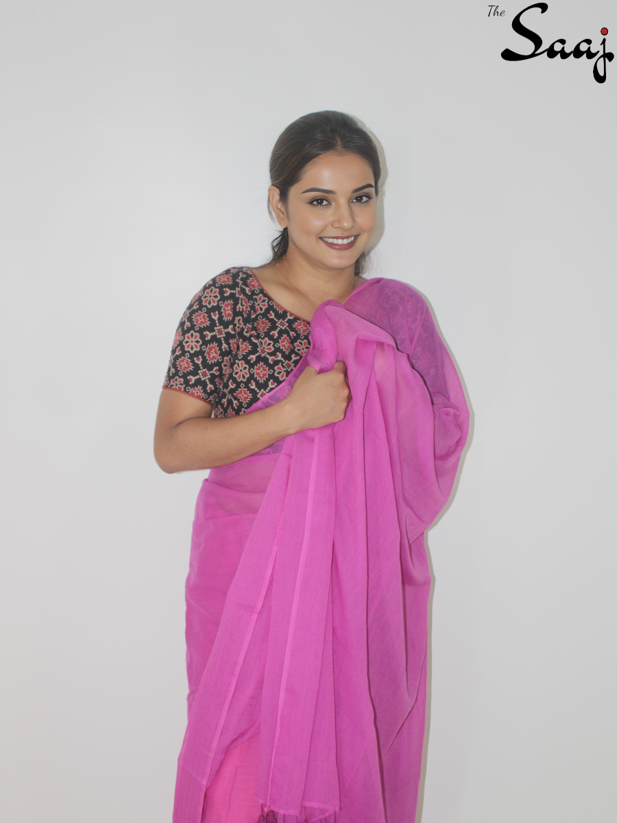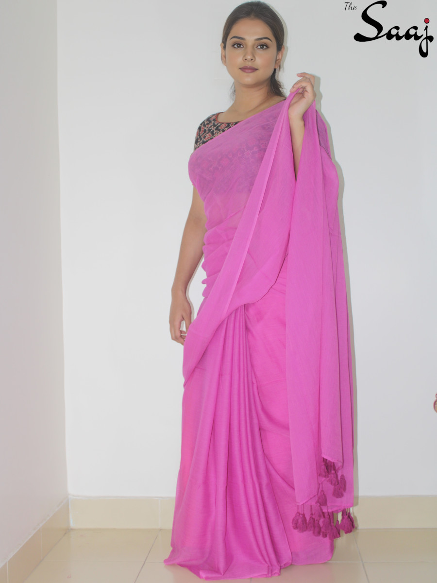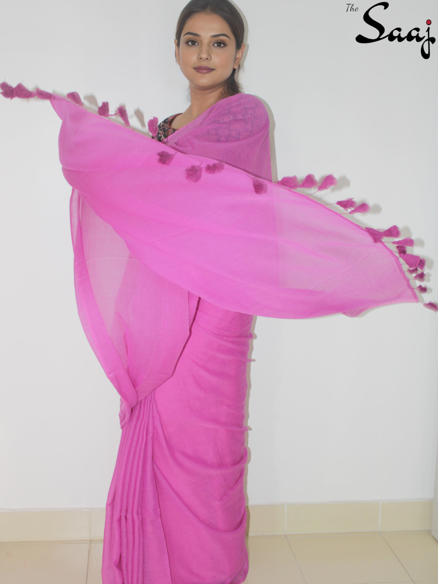 Bougainvillea - Pink Plain Mul Cotton Saree
