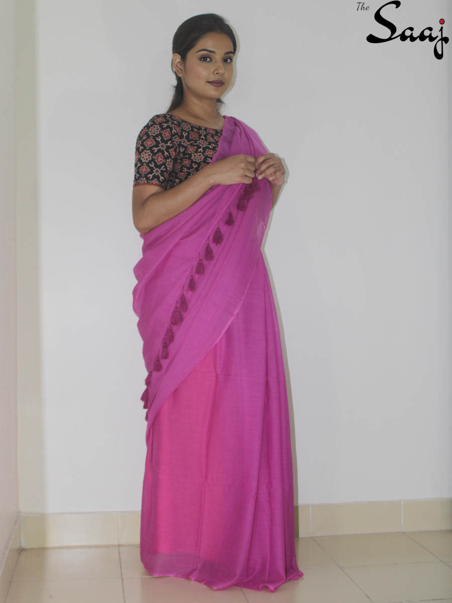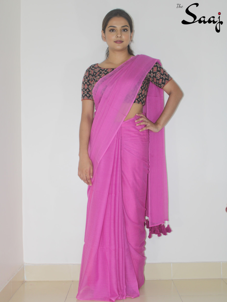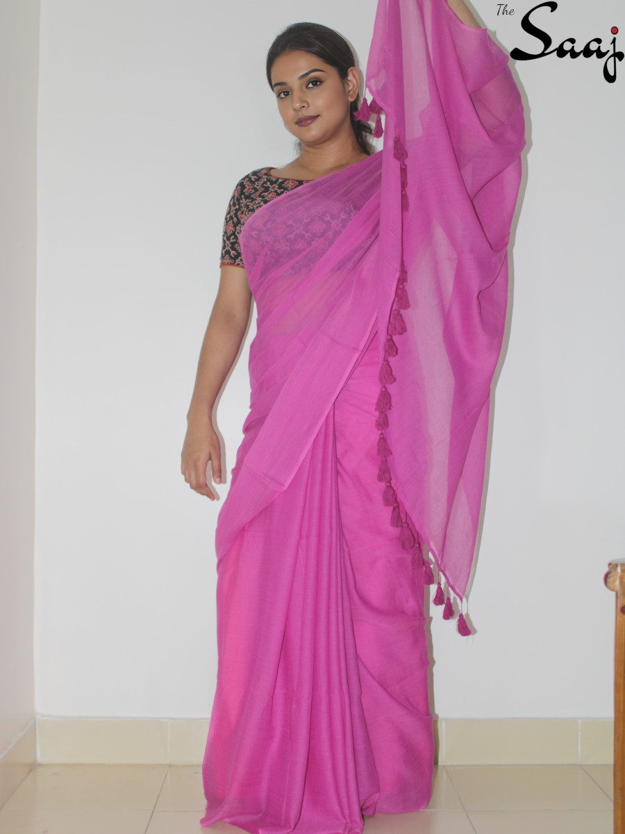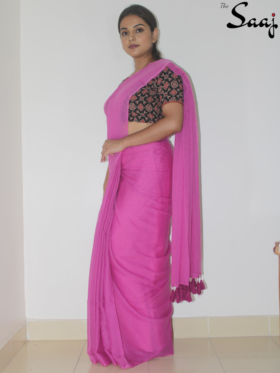 Bougainvillea - Pink Plain Mul Cotton Saree