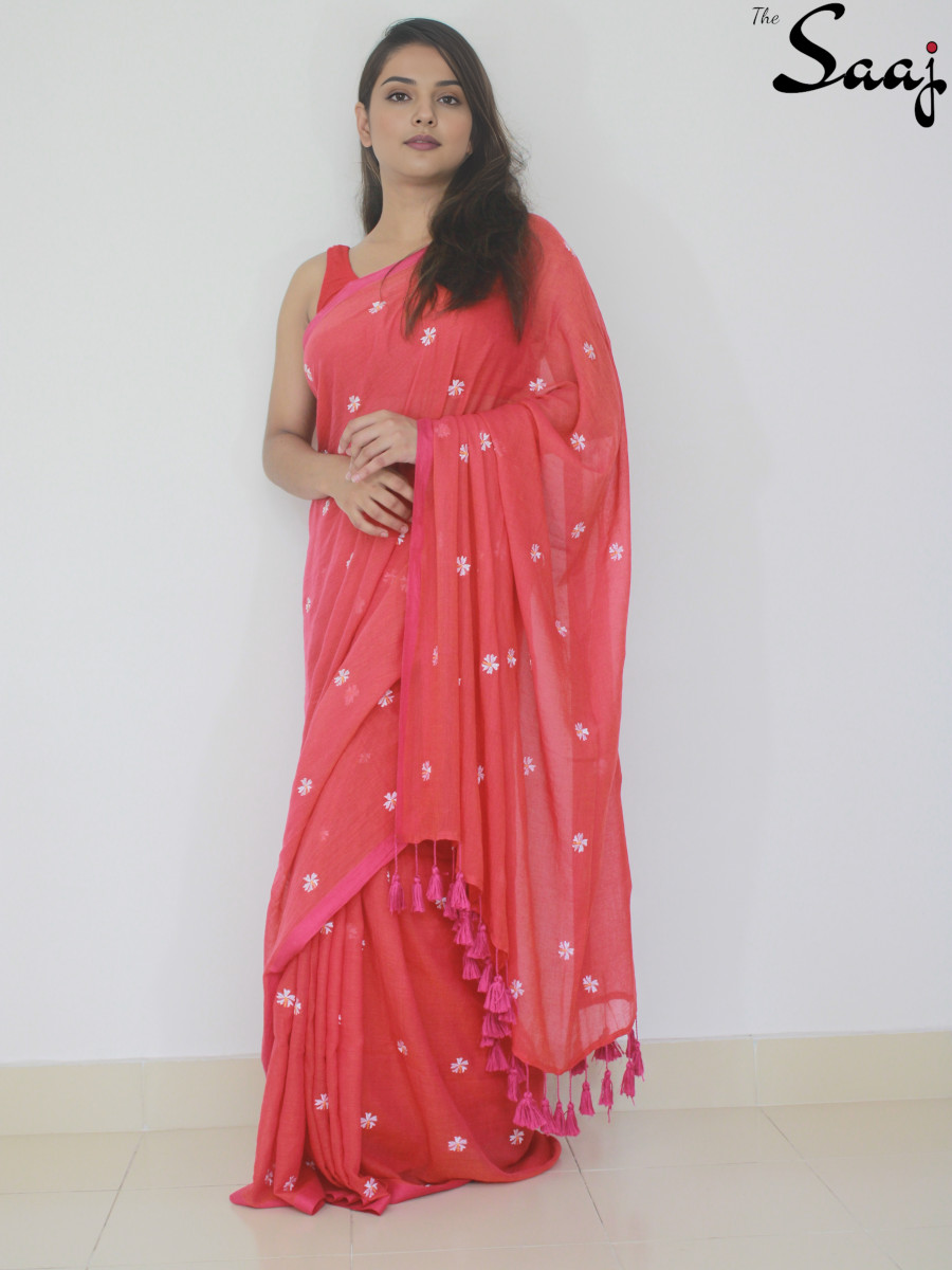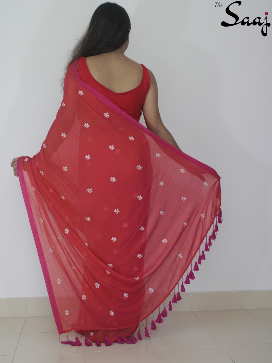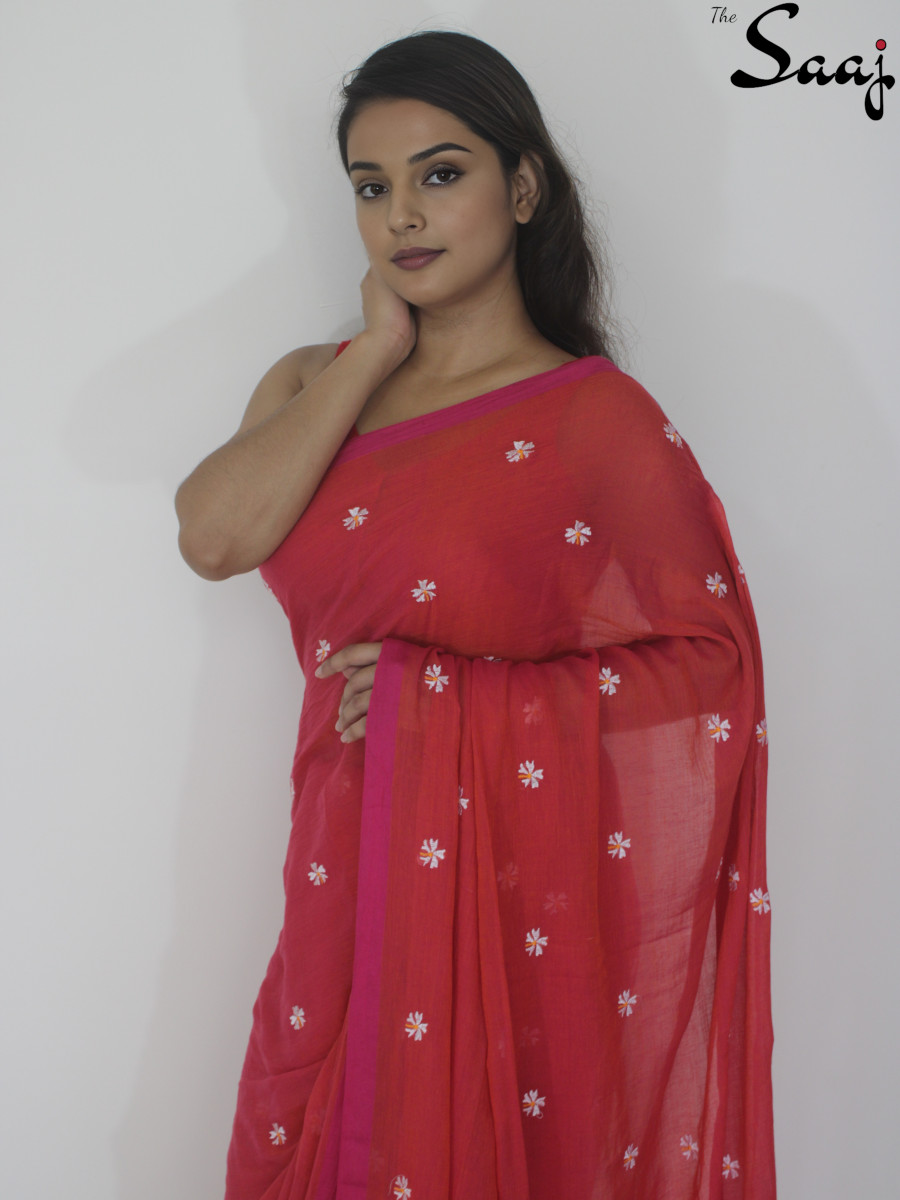 SKU: SAAJFMC8 Categories: Cotton Sarees, Featherlight Mul Cotton, Sarees Tags: Embroidery, Floral Saree, Red Saree