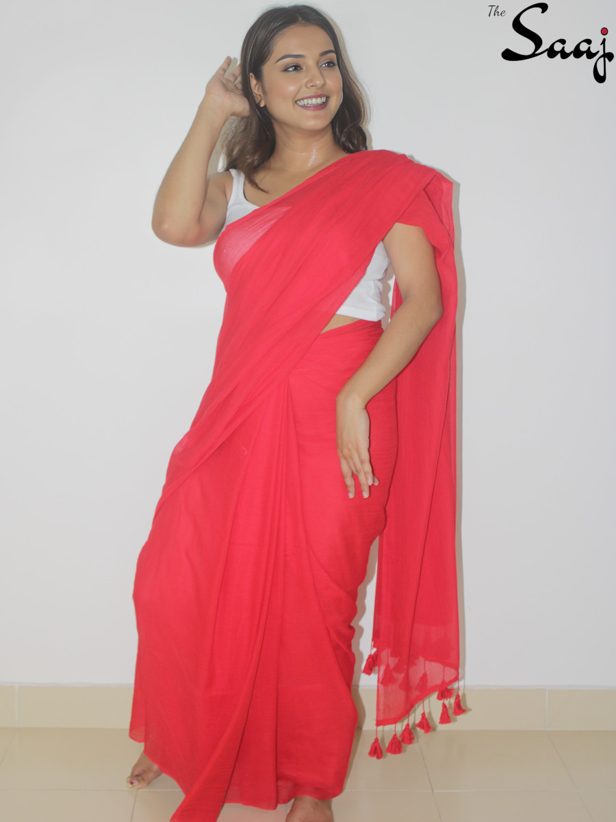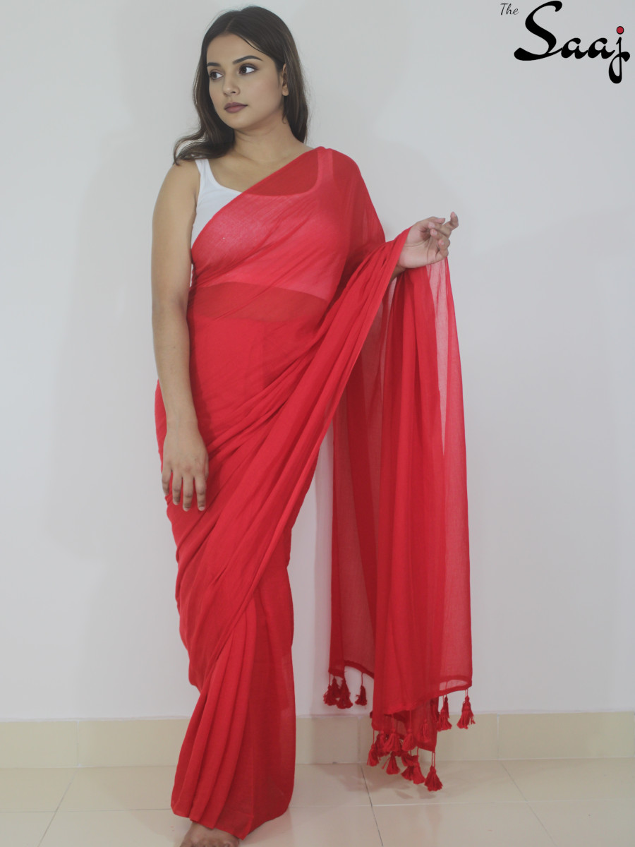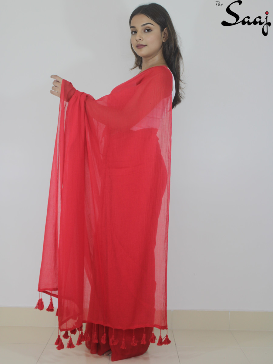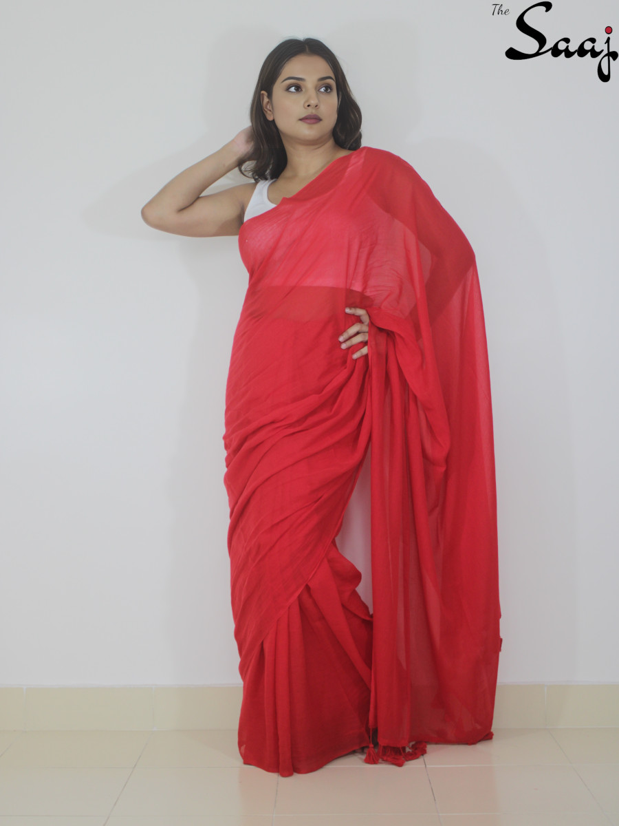 Home Sarees Cotton Sarees Ruby – Red Plain Mul Cotton Saree