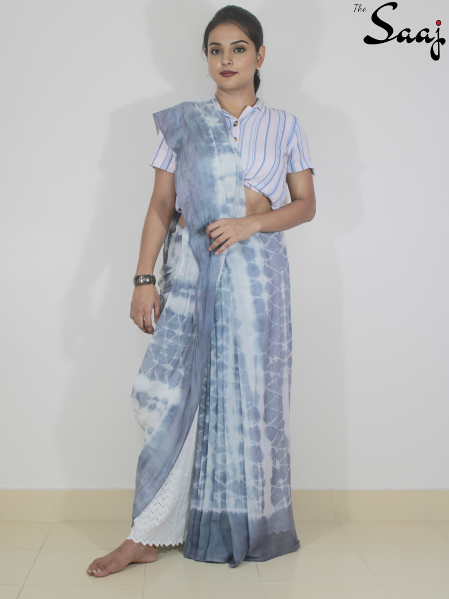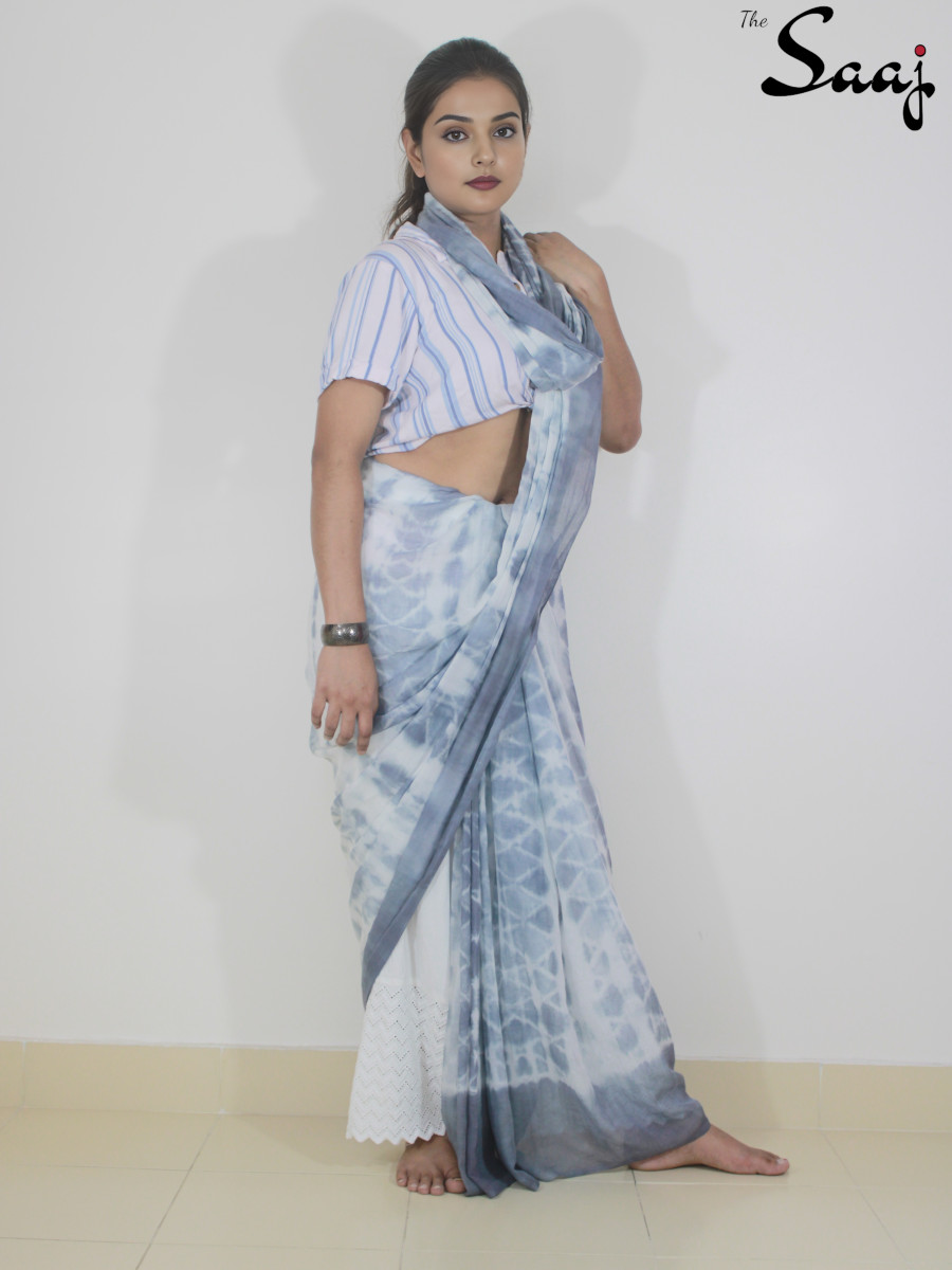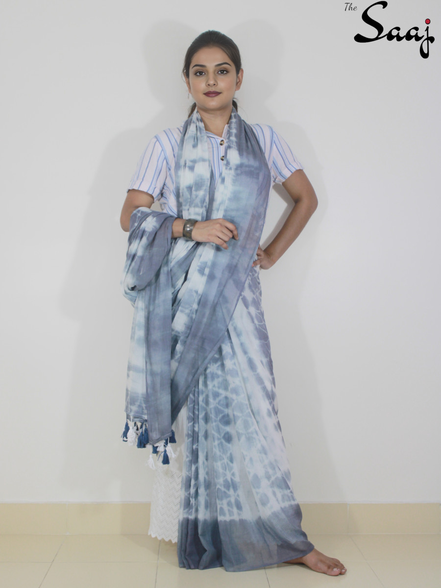 Shades of Grey – Grey and white Shibori Mul Cotton Saree
