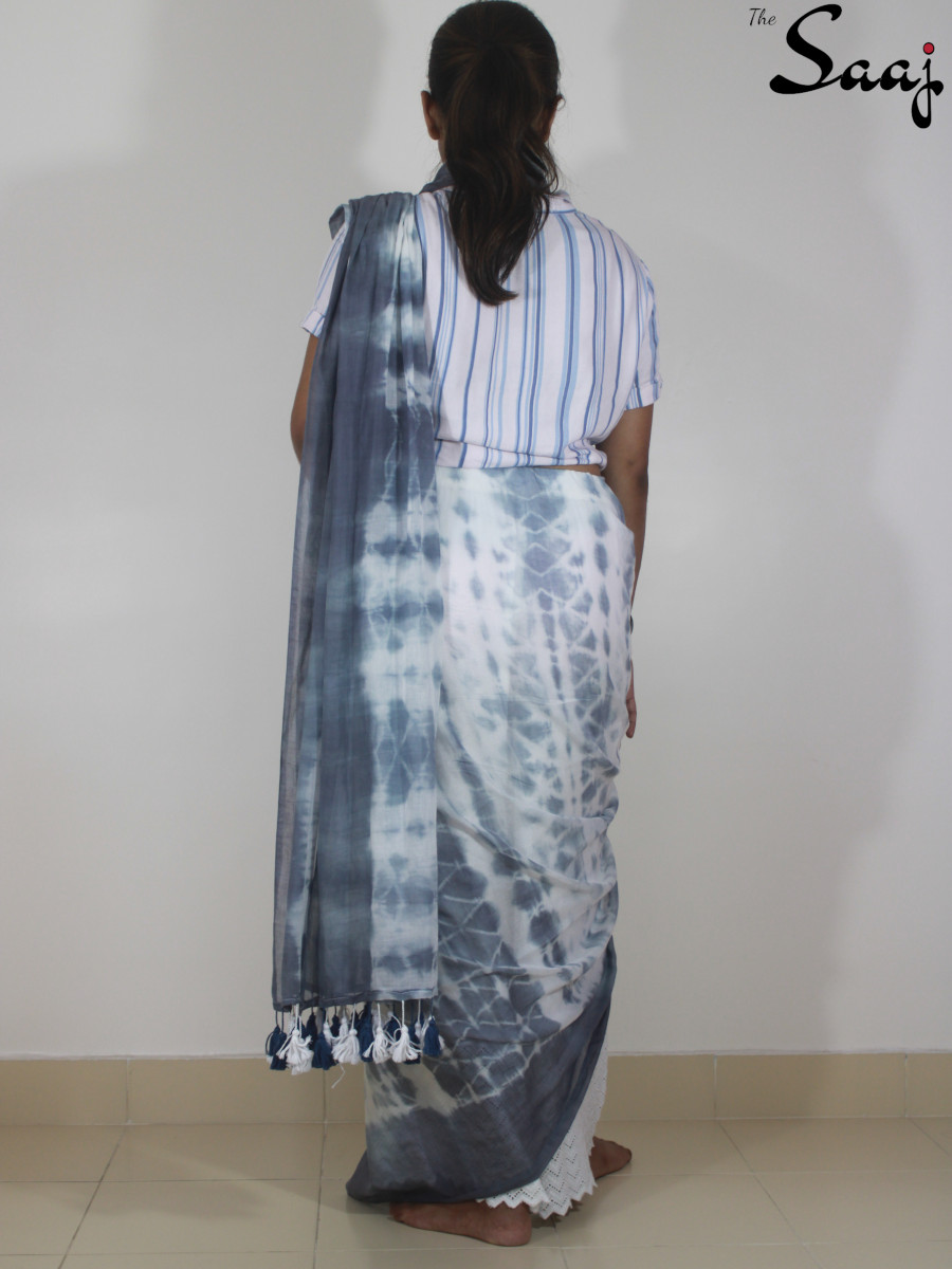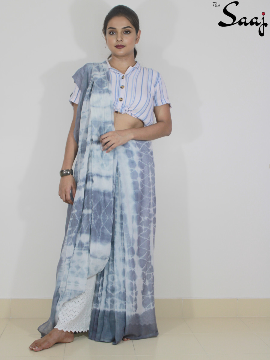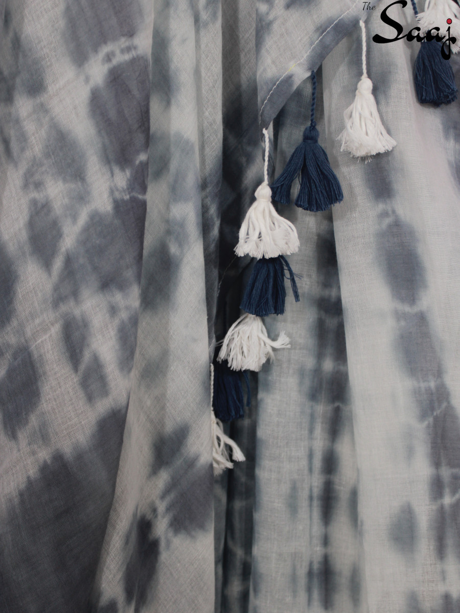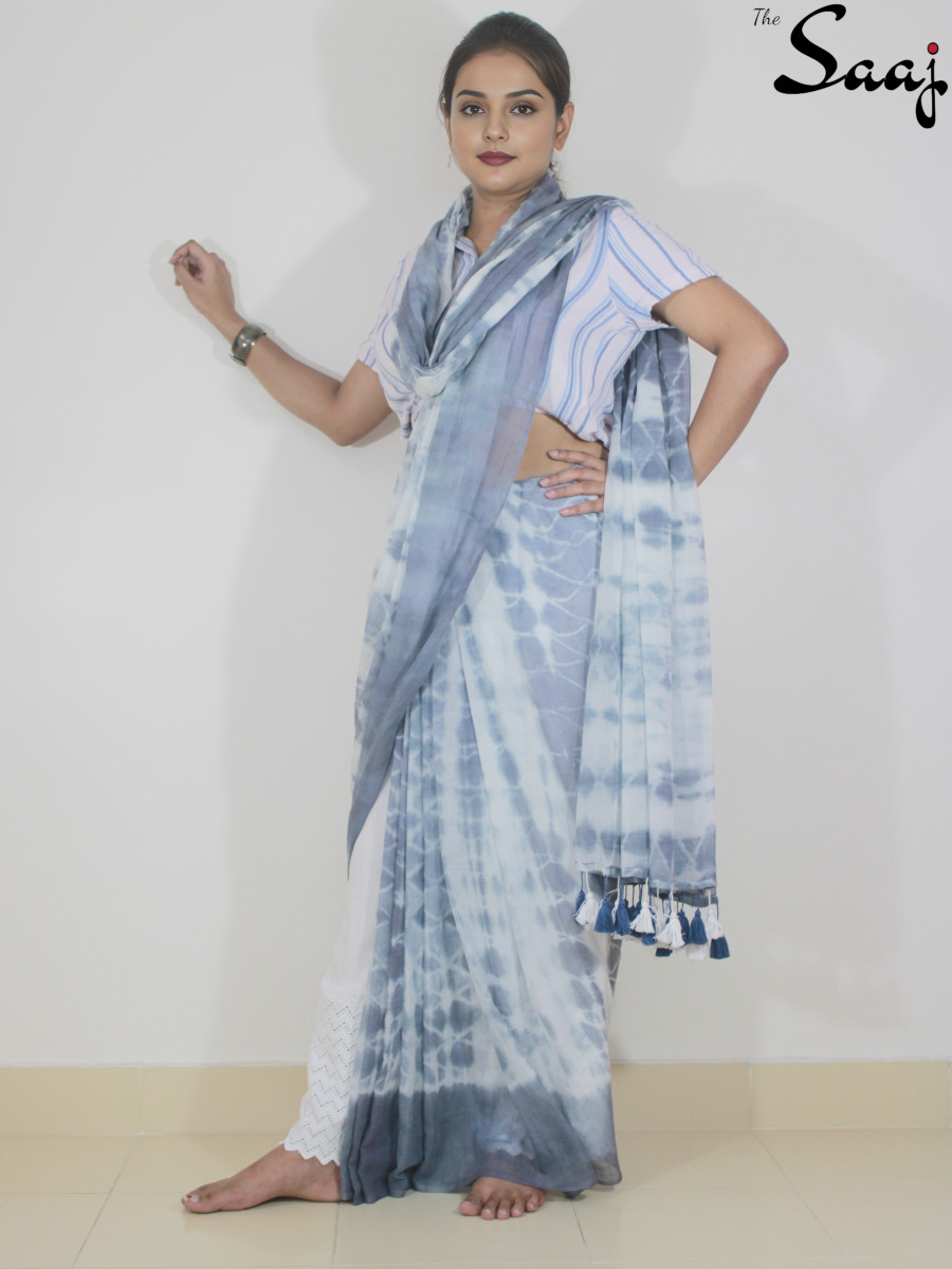 Shades of Grey – Grey and white Shibori Mul Cotton Saree