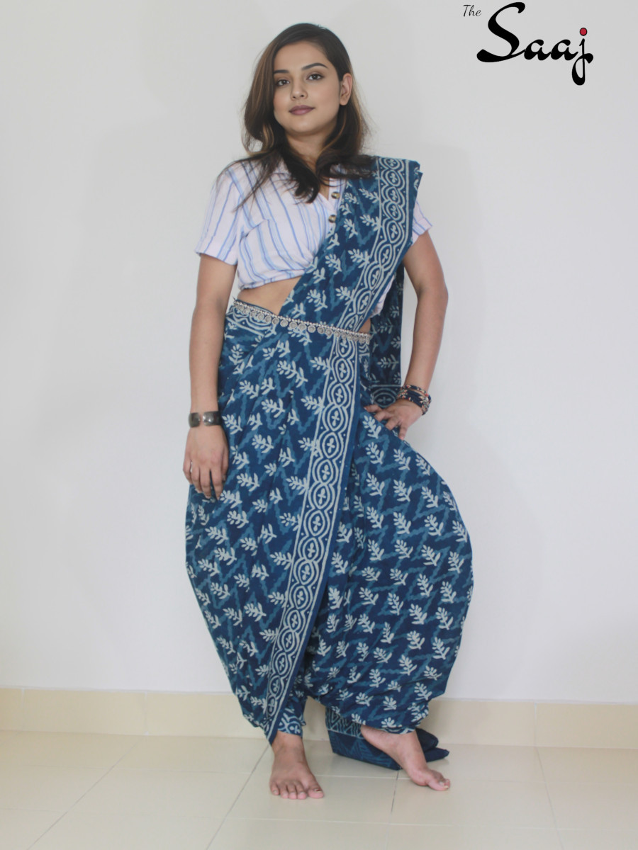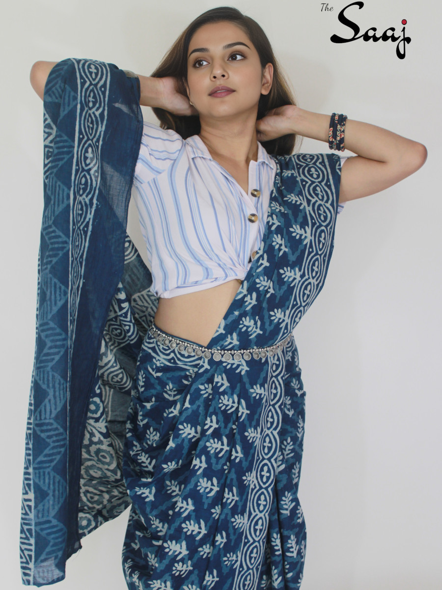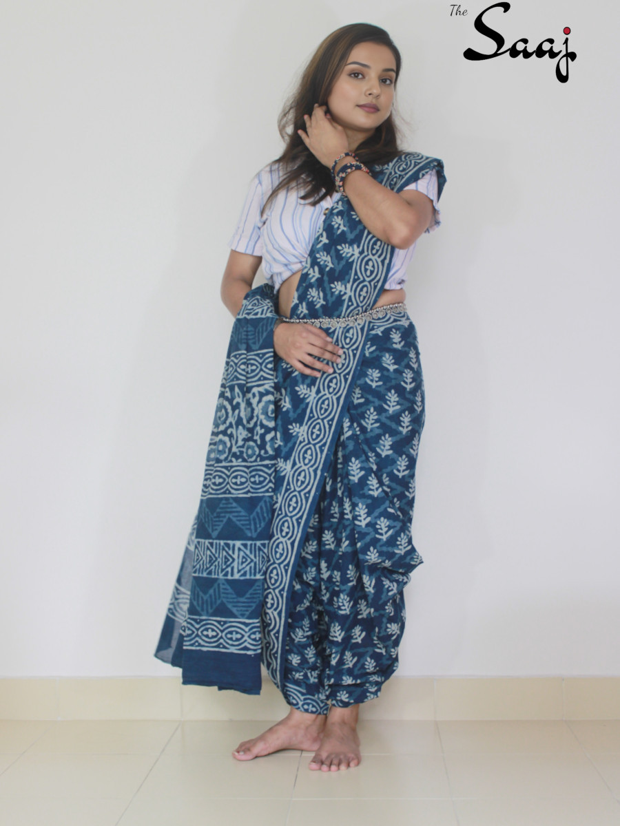 Shama – Indigo Hand Block Print on Soft Cotton Saree