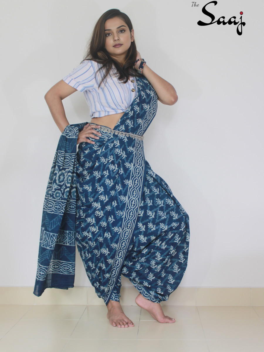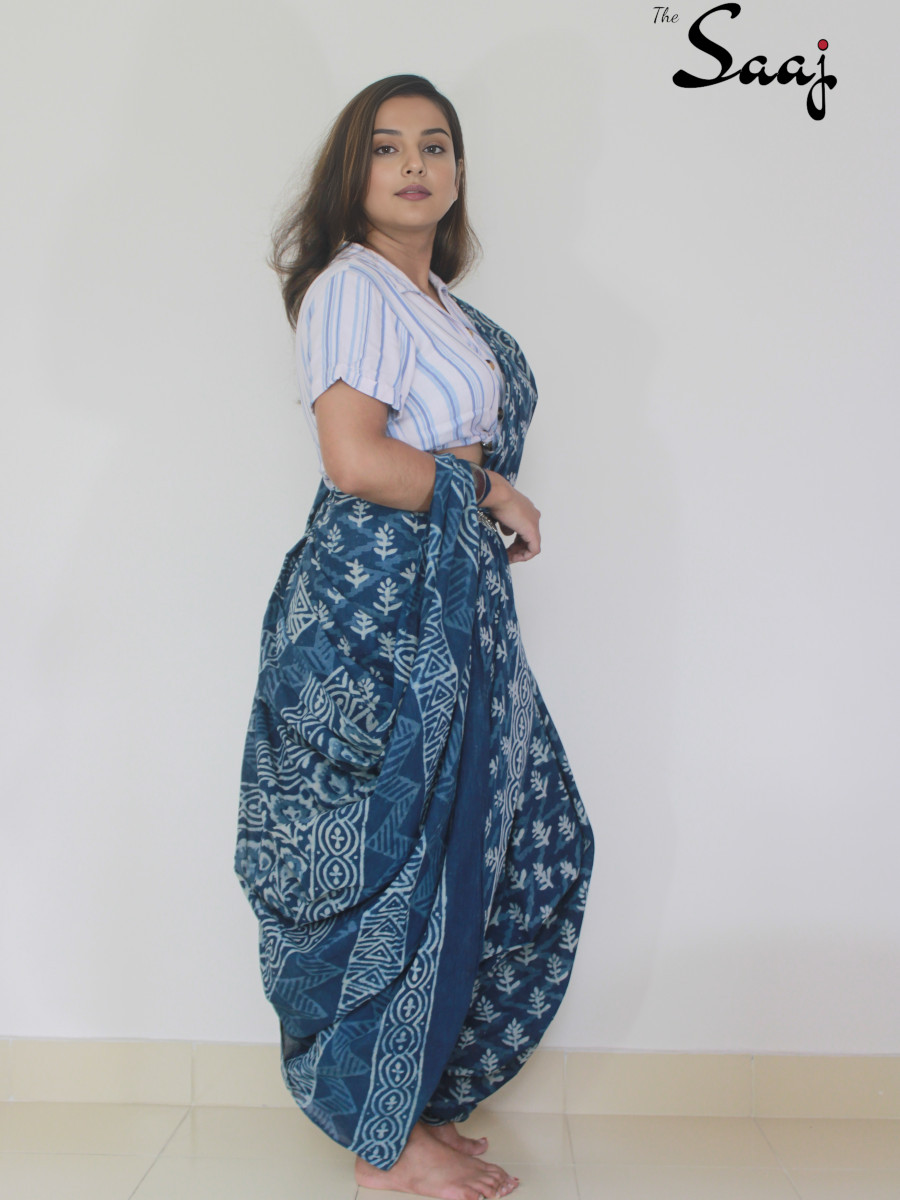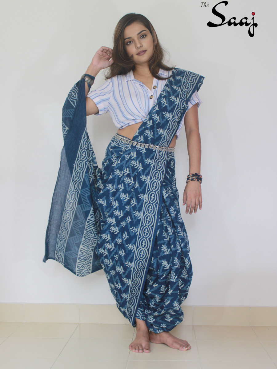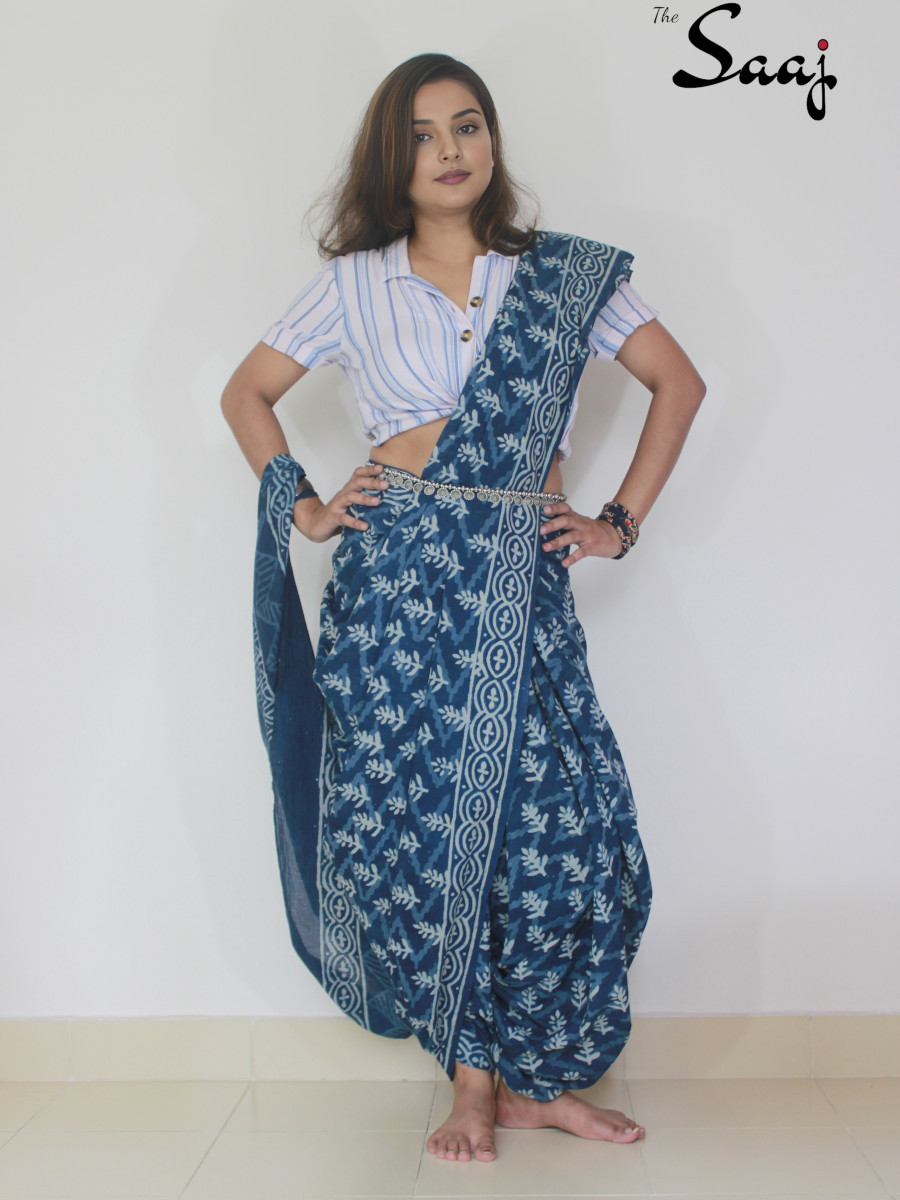 Shama – Indigo Hand Block Print on Soft Cotton Saree