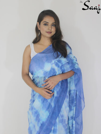 Sky Blossom – Blue and White Shibori Dye Mul Cotton Saree